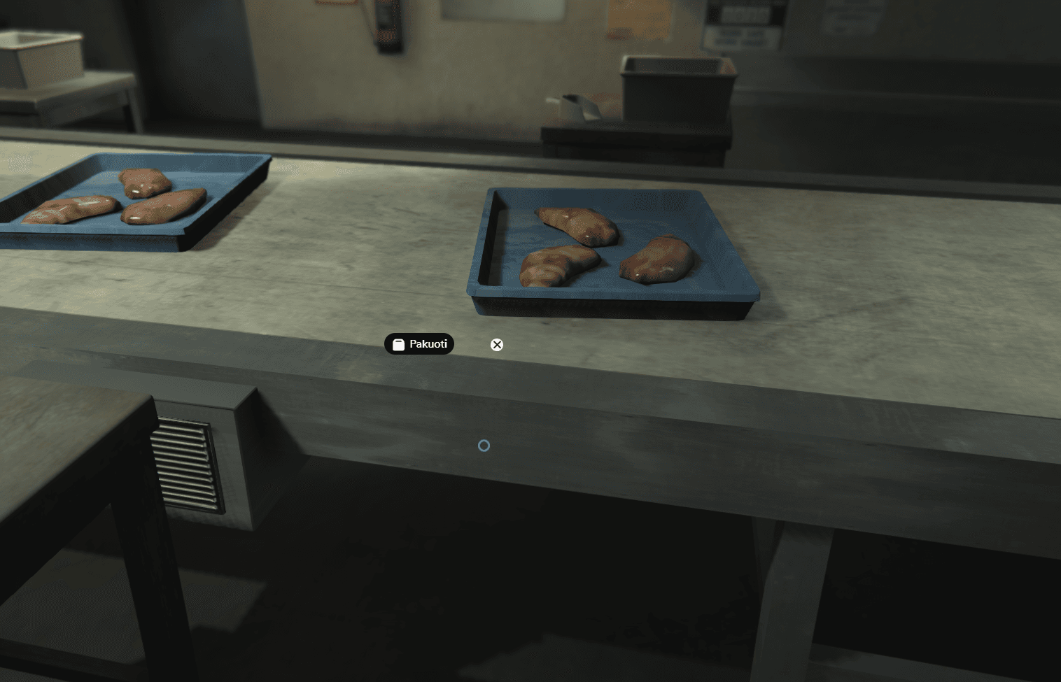 Supjaustę vištą, jums teks ją supakuoti. Eikite prie pakavimo stalo, esančio netoliese ir laikydami ALT, spauskite "Pakuoti".