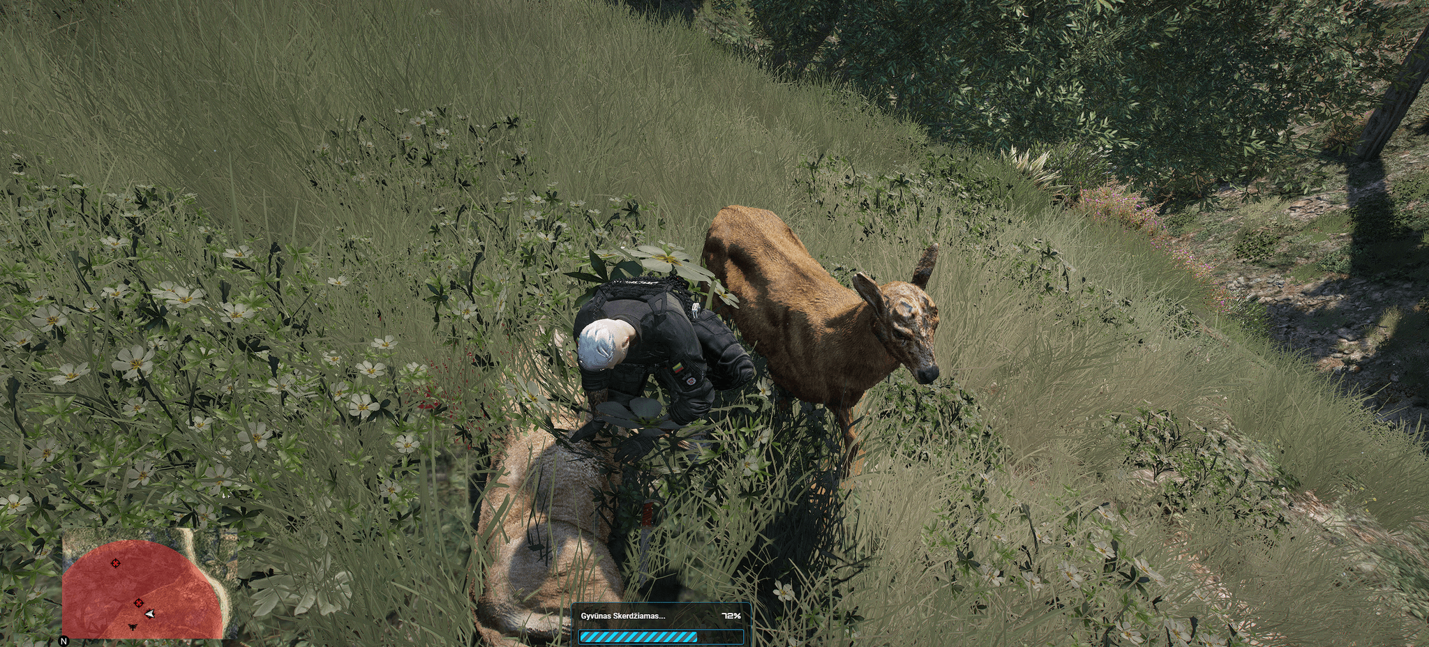 Kai nušausite gyvūną su ginklų turėsite jį paskersti prieikite prie nusauto gyvūno išsitrauke dagerį rankoje paspausite E ir automatiškai paskers gyvūną.